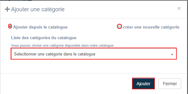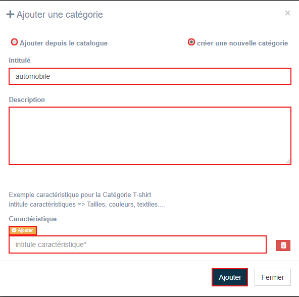 Vous ne parvenez pas à trouver la catégorie que vous désirez dans notre catalogue ? Vous pouvez créer une nouvelle catégorie, remplir les champs requis et valider le formulaire.